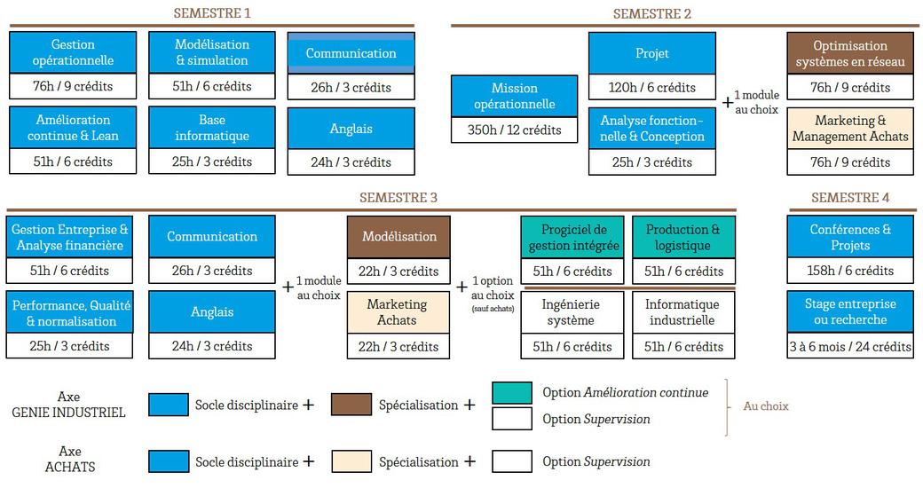 Le cœur de métier ciblé par la formation se porte clairement sur l’organisation des entreprises et de la chaîne logistique, son accompagnement dans une démarche de reengineering et d’amélioration continue, en intégrant un certain nombre de contraintes inhérentes au déploiement de ressources techniques fabriquant des produits complexes.