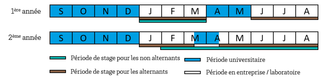 Les deux années de Master GILog se déroulent par alternance de périodes en entreprise et sur l'Université, permettant de cumuler jusqu'à 12 mois de stage en entreprise. Les étudiants souhaitant s'orienter vers la recherche pourront effectuer leur stage en laboratoire.